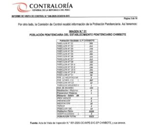La Contraloría emitió un informe de visita de control referido al sistema de seguridad en el establecimiento penitenciario de Chimbote, ubicado en el centro poblado de Cambio Puente; en el que se advierten tres situaciones adversas que afectan la eficacia y continuidad del sistema de seguridad penitenciaria:
