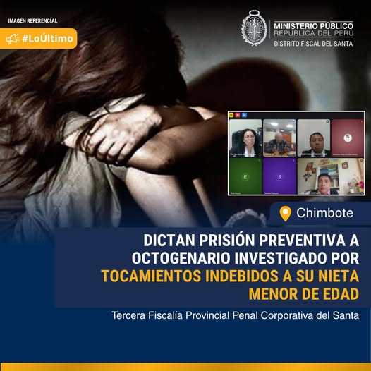 La Tercera Fiscalía Provincial Penal Corporativa del Santa, a través del fiscal adjunto provincial Juan Carlos Javier Portales, obtuvo siete meses de prisión preventiva contra F. R. G.(82), investigado por la presunta comisión del delito de tocamientos indebidos en agravio de su nieta de siete años.