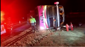 Omnibus de transporte de pasajeros Perla de Altomayo se despisto y volcó en panamericana norte km 299, dejando un persona fallecida.