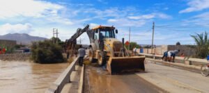 La Municipalidad Provincial de Huarmey y el COEP trabajan en conjunto para reforzar la ribera del río Huarmey. Antamina se sumó a las labores poniendo