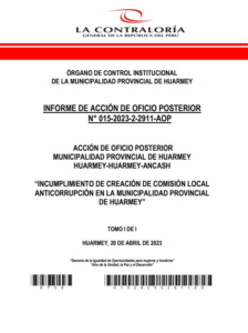 ⚠️ MP Huarmey – Comisión Anticorrupción La Contraloría emitió informe de acción de oficio posterior N° de informe: 015-2023-2-2911, con el título: INCUMPLIMIENTO DE CREACIÓN