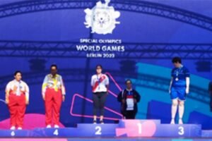 22/06/2023 Silvana Morón Carrasco, gimnasta de nivel 1, quedó en segundo lugar en las competencias de balón y cinta, en la disciplina de gimnasia rítmica. Berlín,