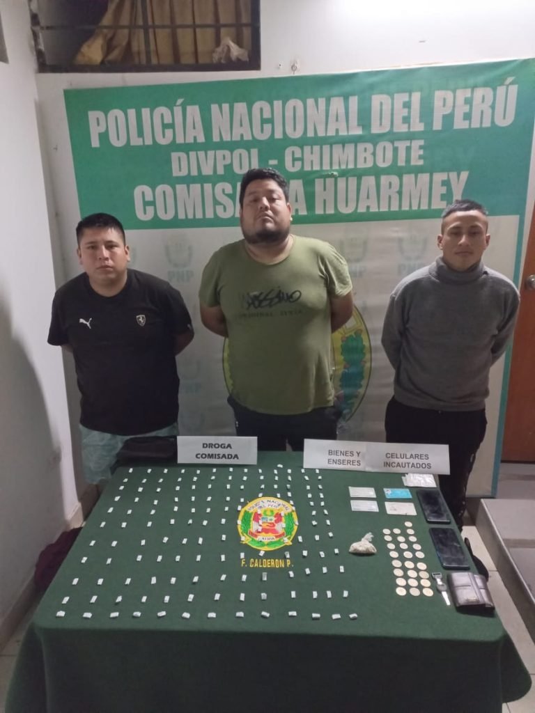 Luego se arrestó a unos de los detenidos en posesión de 150 ketes de pasta básica de cocaína, así mismo tiró un puñete al mismo policía, se pidió la ayuda de otros agentes policiales y los tres sujetos fueron intervenidos y llevados a la comisaría de Huarmey.