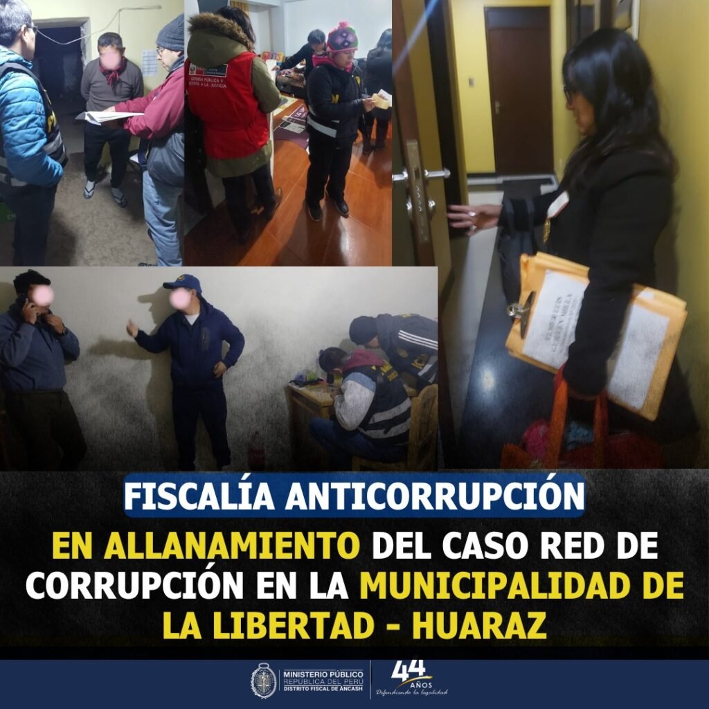 El Tercer Despacho de la Fiscalía Provincial Corporativa Especializada en Delitos de Corrupción de Funcionarios del Distrito Fiscal de Ancash, liderado por el fiscal Wilber Flores Lima y con el apoyo de los fiscales adjuntos Walter Mattos, Aleksandr Pantoja, Edith Flores, Roy Chinchay, Marianela Guerrero, Marco Torres, Elena Cruz, Bélgica Araujo, Saniya Rosario, Georges Tello, Ada Robles, Roxana Chauca, Heidi Riveros. Pablo Martín y Benedicto Gómez, en trabajo conjunto con el Departamento de Lucha Contra la Corrupción de la PNP (DIRCOCOR) y personal de la Defensa Pública, ha logrado desarticular una red de corrupción que habría defraudado al Estado en más de ciento setenta y un mil doscientos quince con 60/100 (S/.171,215.60) soles mediante pagos irregulares en el proyecto “Mejoramiento del Servicio de Provisión de Agua para Riego” en la localidad de Cajamarquilla, distrito de La Libertad.