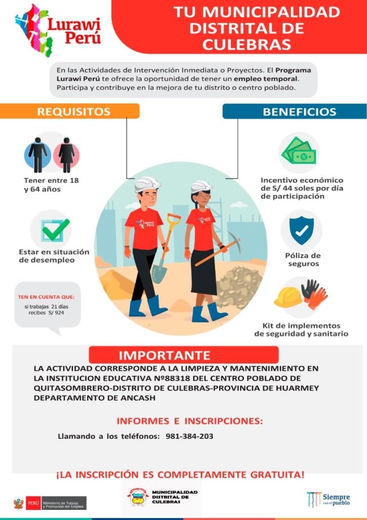 La Municipalidad Distrital de Culebras y Trabaja Perú.