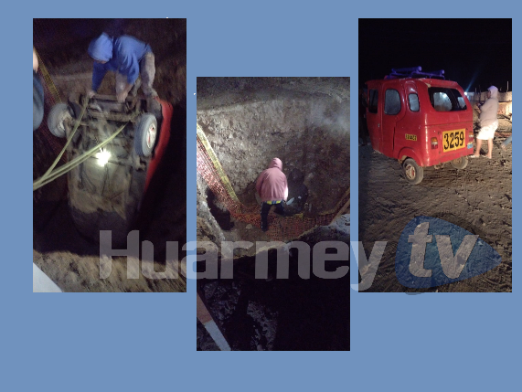En horas de la noche una moto taxi sufre aparatoso accidente al caer en una zanja cuando circulaba por el populoso asentamiento humano de Buena Villa; cabe resaltar que se están realizando trabajos en obras de agua y desagüe.
