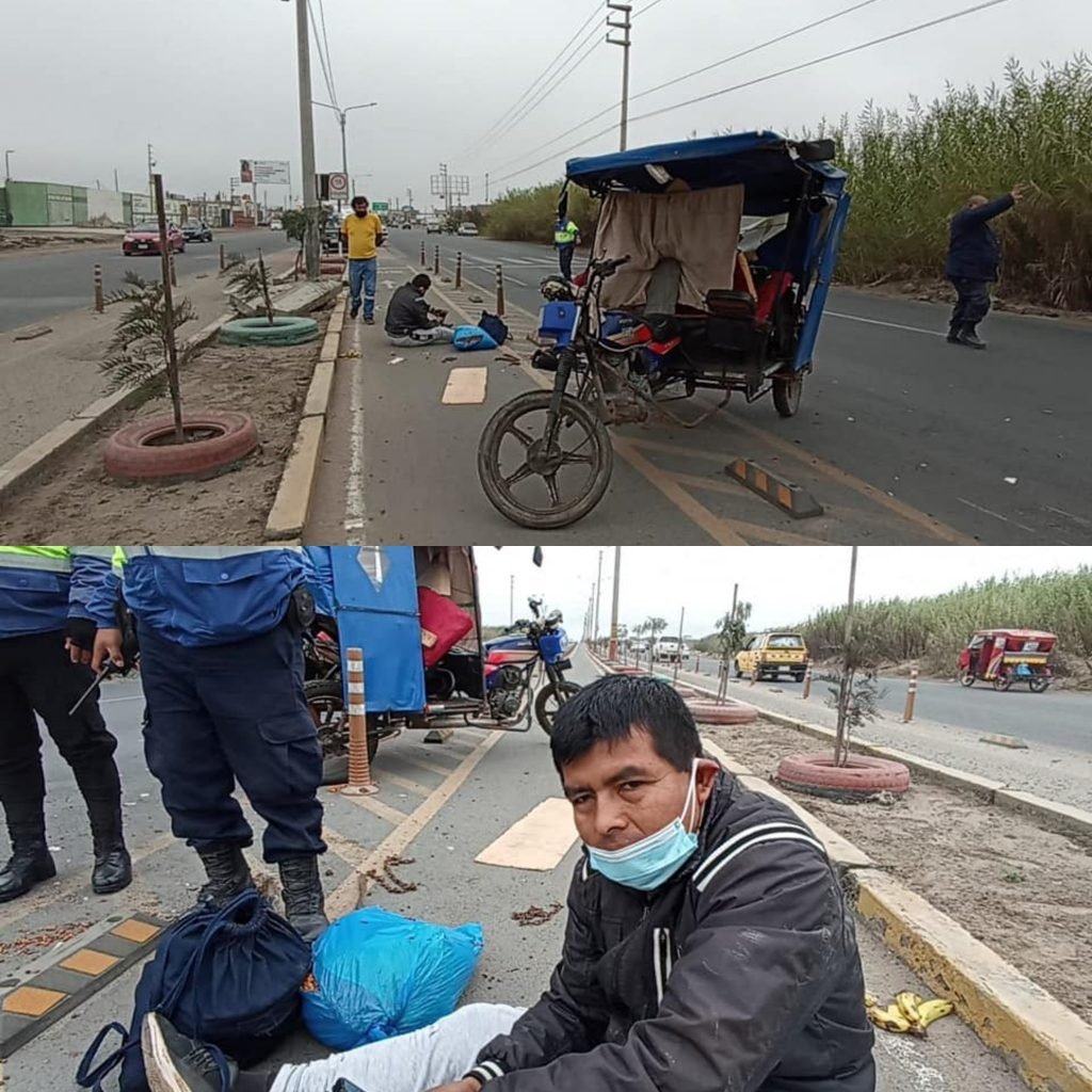 Ambos vehículos se dirigían de norte a sur por la avenida Pardo; el choque por alcance se produjo al ingreso de Nuevo Chimbote. «Yo venía de La Perla por mi carril izquierdo, no sé cómo siento el impacto atrás y salí volando de la moto. Me duele mis piernas y atrás mi espalda», manifestó Juan López.