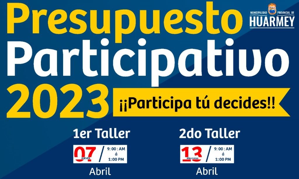 Con la finalidad de mejorar la eficiencia en la asignación de recursos públicos y la proyección de prioridades para la provincia, la municipalidad Provincial de Huarmey, realiza la convocatoria para el Presupuesto Participativo 2023.