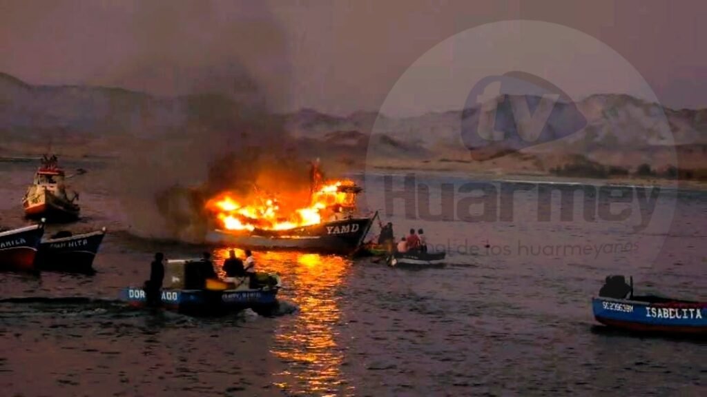 En horas de la tarde al llamado de los vecinos del Puerto Huarmey que estaba  sucedio un incendio de una embarcacion Pesquera cuando se encontraba anclada en las instalaciones del muelle municipal de Huarmey.